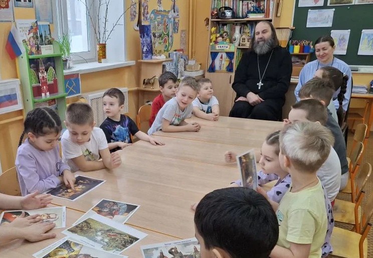 19 февраля, в рамках просветительского проекта Подольской епархии «Добрый сад», в дошкольном отделении 2 МОУ СОШ №14 г.о.Подольск, прошло занятие «Защитники России», которое провел для дошкольников настоятель Александро-Невского храма п. Александровка протоиерей Сергий Екимов. Отец Сергий рассказал о ратных подвигах великих полководцев Александра Невского, Федора Ушакова, Александра Суворова, Михаила Кутузова и о том, что все они имели одну цель: сохранения православия как силы русского народа.