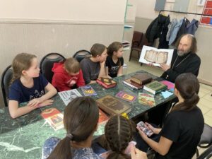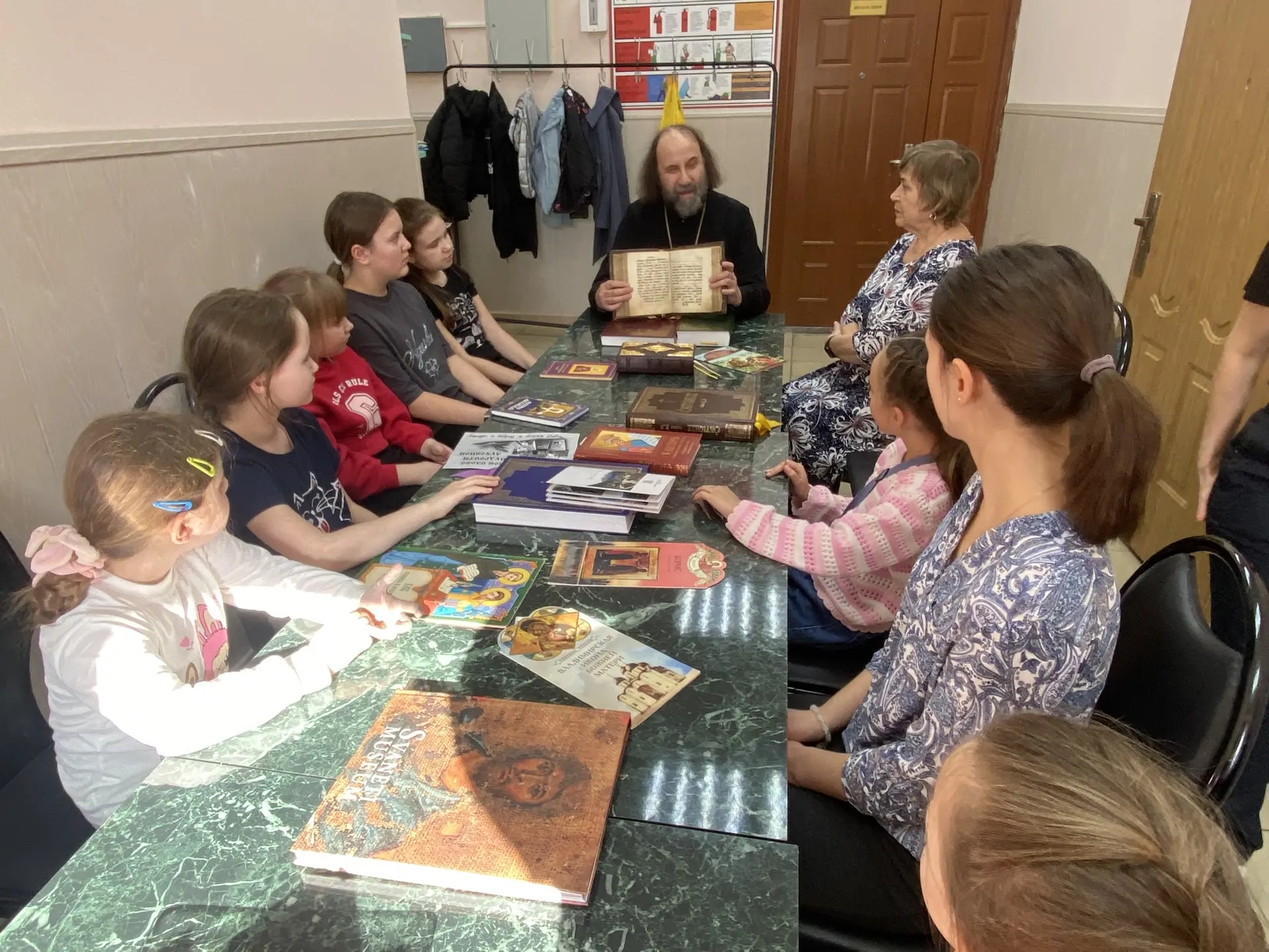 Настоятель Александро-Невского храма протоиерей Сергий рассказал детям историю книгопечатания на Руси и значение православной книги в духовном воспитании человека.